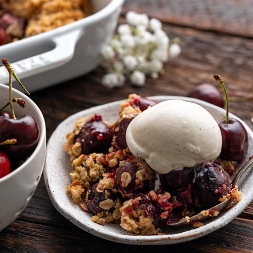 If you don’t have fresh cherries…try substituting with 2 cans of cherry filling and top with the topping ingredients. I would check them after 25 mins though.