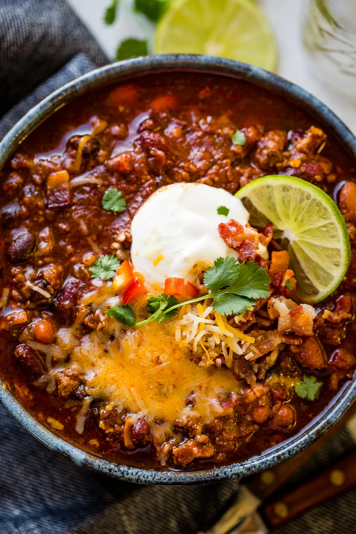Serve with limes, sour cream, cheese, and a little bacon!