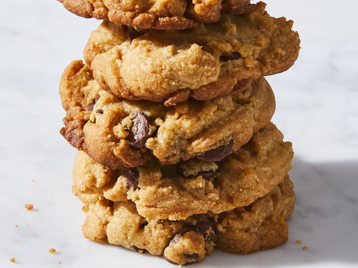 In the bowl of an electric mixer, cream butter and peanut butter together for 2 minutes, until fully combined and light and fluffy. Add the brown and granulated sugar then mix for 2 minutes.